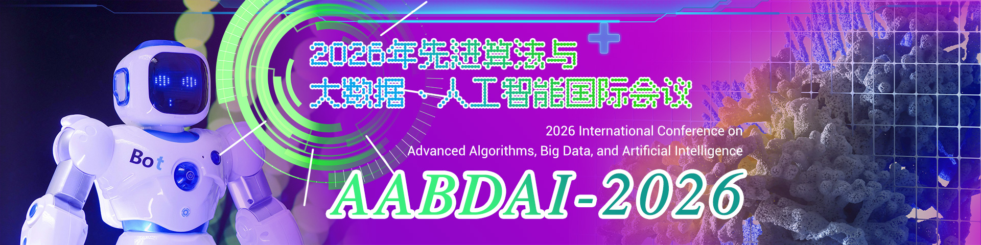 The International Conference on Advanced Algorithms, Big Data, and Artificial Intelligence (AABDAI 2026) will be held grandly in shanghai, an innovative city in the Guangdong Hong Kong Macao Greater Bay Area of China. This conference focuses on the deep integration and cutting-edge development of advanced algorithm design, big data analysis, and artificial intelligence technology, committed to building a high-level, interdisciplinary international academic exchange platform, gathering experts, scholars, researchers, engineers, and enterprise technical representatives in computer science, data science, mathematics, artificial intelligence, machine learning, optimization theory, and intelligent applications. The conference will focus on in-depth discussions on cutting-edge topics such as new machine learning and deep learning algorithms (such as federated learning, reinforcement learning, graph neural networks), efficient computing models and distributed algorithms in big data environments, the application of intelligent optimization algorithms in complex systems, advances in natural language processing and computer vision, generative AI (AIGC) and big model technology, algorithm interpretability and trustworthy artificial intelligence, privacy preserving computing and secure data sharing, algorithm innovation and practice of artificial intelligence in medical, financial, transportation, education and other fields, and lightweight algorithm design in edge intelligence. Through various forms such as keynote speeches, thematic forums, paper presentations, and technological achievements displays, we aim to promote breakthroughs in algorithm theory and the implementation of intelligent applications. AABDAI 2026 emphasizes the core concept of "algorithm as the core, data as the basis, and intelligence as the application", and is committed to serving the national artificial intelligence development strategy and the needs of digital economy development. The high-quality papers accepted by the conference will be recommended for publication in international journals indexed by SCI, EI, Scopus, or IEEE to enhance academic influence.